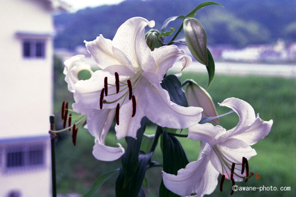 1997年07月06日(日) 天気:晴れときどき暴風雨ベランダいじり昨日の「スナップ会」について,書きたいことはまだいろいろあるが,とりあえず次の機会に譲ることにする。今日は,ときどき強烈な陽射しがあるものの,ときどき猛烈な風と雨がある妙な天気である。愛車もいないことなので,久しぶりにベランダのプランターの整理を行うことにした。 ここしばらく,ずっと気にかかっていたことがあった。ラベンダーが今年ようやく咲いたわけだが(5月29日の日記を参照),種を蒔いてから3年たってすっかり大きくなってしまっている。この伸び過ぎた鉢の整理と,来年もラベンダーの花を楽しむために,挿し芽で増やそうと考えていたのだ。 昼過ぎには,かなり激しい雨が降った。部屋の片付けなどをはじめてしまい,なかなか出かけられなくなったが,気がつくと外は非常にいい天気になっている。 夕方になってから,ようやく「メネデール」を買いにでかけた。ついでに,紀伊國屋で三段峡周辺の25,000分の1の地形図も買っておいた。帰宅するころには,風が非常に強くなっていた。カサブランカの花が心配なので部屋の中に入れた。そうすると,また撮影したくなる。薄い赤系のバックをつくり,Nikon F3にわざわざKodachrome 64 (KR)を装填して,フラッシュを使ってパシャパシャと数カット撮った。発光部の前にトレーシングペーパーをかけたうえにバウンスさせまくったので,もう露出なんてわからない。外光オートのフラッシュにおまかせである。