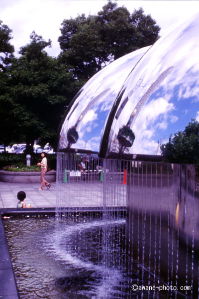 広島駅前の噴水を撮ったあと,的場町界隈の中古カメラ店を覗きにいった。数件覗いたが,mahalさんがF90X用縦位置グリップ¥9,000を見つけて喜ばれていたこと以外,興味をひくものはなかった。