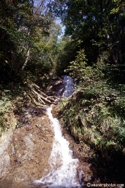 久しぶりに来た三段峡であるが,さすがに景色はあまりかわりばえしない。風に揺れるススキの群れだけが秋をストレートに感じさせてくれた。さて,聖湖から餅ノ木集落の間には5つの大きな滝(というかポイント)がある。そのなかでもっとも下にある娘滝はこれまで撮影をしたことがなかった。形がいまひとつおもしろくないからである。しかし,今日は違う。娘滝は滝壺に近づきやすく,さらにその滝壺付近が十分に明るい。そう,夏にピカイチカリブを買った最大の目的を今まさに実行するのだ(1997年7月26日の日記を参照)。