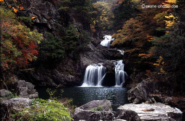 日曜日に三段峡で撮影したフィルムのうち,6×9判の方はすべて撮りきっていたので,今朝,ラボに渡した。そして,仕上がってきたものを見る。まあ,こんなもんかな。紅葉した木が,三ツ滝に覆いかぶさるように見える構図が個人的にお気に入りだ。当然,スローシャッターで滝は白く流してしまう。