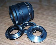 TAMRON 28-200mm F3.8-5.6 ASPHRICALレンズと 交換マウントの例 (Nikon Ai, PENTAX K(A), TOPCON RE) |