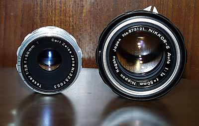右:ニコンFマウントのニッコール(50mm F1.4) |