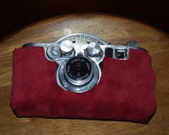 とにかく,裏蓋が開きやすい状態では,とても実用にはならないので,手元にあった皮を使って,簡単な袋を作ってみた。これで,裏蓋が不用意に開くこともなく,安心して持ち運べるようになった。しかし,撮影中に,なにげにカメラを地面に置くと,その衝撃でか,裏蓋がまた開いてしまった・・・・・。