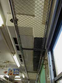 最近は,この種の一般型ディーゼルカーも冷房化されており,夏でも快適である。しかし,窓を開けて風をいっぱいにあびて,という楽しみはやりにくくなった。また,この車両には,後から冷房装置を追加されているので,車内に冷房関係の機器が飛び出しており,網棚の上に荷物が載せにくくなっている(下右画像参照)。