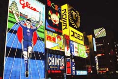 道頓堀川には,「グリコ」も,ワールドカップ日本チームのユニフォームを着た姿を映していた。