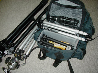 しかし,道がないところなど,荷物は全部背負っておかねば通ることが困難なケースもある。そういうとき,カメラバッグはリュック型のものを使い,三脚をそれに結わえるということも多いだろう。ただ,やぶのようなところだと,それでは三脚がひっかかりやすく,非常に歩きにくいことがある。そこで,リュックの中にすっぽり入るような三脚を探してみることにした。
