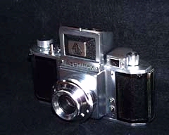 うちのアサヒフレックスは,それに小改良が施された1A型である。コンタックスSやプリズムファインダー固定式,エキザクタはファインダー交換式で,シャッター速度も高速から低速まで広くカバーされていることにくらべると,アサヒフレックスはウェストレベルファインダー専用(別に透視ファインダーがある)で,シャッター速度も1/500秒から1/25秒までしかカバーしていない。ファインダーは暗く,レンズの絞りもプリセット式なので,決して使いやすいカメラではないが,比較的小型であることと,シャッターレリーズボタンを離すとミラーが戻ること(クイックリターン式ではない)は,コンタックスSやエキザクタよりも優れたポイントであるといえただろう。