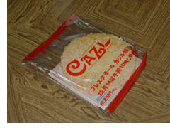 オープン当日には,きっとポスターに写っている,大きな「えびせん」が配られるに違いない,と期待していたのだが,その予想は見事にちょっとだけ当たり,昨日13日には,小さな(とはいっても直径16cmほどのものが3枚)「えびせん」が配られていた。その近辺を通るだけで渡されるのだから,どんどんたまってしまう。