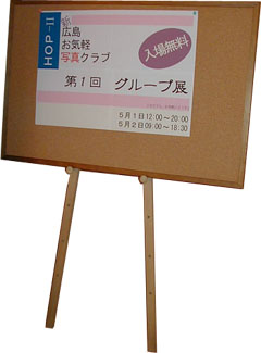 最近,写真展を開くことを思いついたのだが,今回はとにかく,まず一度やってみようじゃないか,という気分である。そこで,もっともとっつきやすいのではないかと思える方法を使うことにした。数人の仲間を募り,有料の会場を借りて,集団で写真展を開いてみることにしたのである。なお,この集団は「新・広島お気軽写真クラブ(HOP-II)」と名乗ることにした(2004年1月17日の日記も参照)。