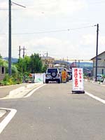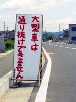 建設中の道路だから,ここから先はまだ大型車は通れないんだろう。と思い,先へ進んだ。次の交差点にもなにか看板が立っている。
