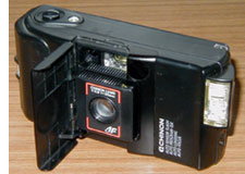 最後に,「フジカメラ」に寄った。ここは,この界隈でもっとも新しい店である。以前,この場所には「OKカメラ」という店があったのだが,これが昨年に閉店した。そこに新たに開店した店である。ここでは,ときどき珍しい(と個人的に感じるような)カメラが並んでいることがあり,おもしろい。店に入ってみると奥の方に,数台のコンパクトカメラが並んでいた。なにげに探ってみると,「チノン・ベラミAF」があった。「チノン・ベラミ」は沈胴式ボディの非常にコンパクトなカメラで,人気が高く,わりと高価に取引されているようである。いっぽう「チノン・ベラミAF」は,沈胴式というしくみを取り入れているが,「チノン・ベラミ」とは似ても似つかぬ,安っぽいカメラである。ただ,あまり売れなかったのだろう,中古カメラ店などで見かけたことは,これまでほとんどなかった。という個人的に珍しいと感じたカメラを見つけてしまったので,ついつい買ってしまったのである。