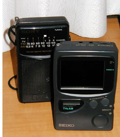 もう1つは,中波ラジオつきのポケットテレビである。これは,通勤の帰り道などに,カープの試合中継を確認するにも重宝する(笑))。ただし,テレビを使うと電池の消耗が激しい。ラジオだけでも,旧来のポケットラジオにくらべると,はるかに電池のもちは悪い。ついでに言うと,単3乾電池3本で動作するというのは,中途半端で困る(笑)。
