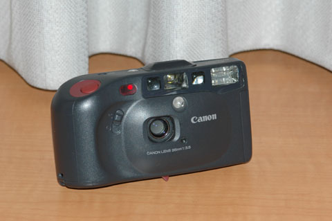 キヤノン「オートボーイ プリズマ」という,1988年10月に発売されたカメラだ。レンズにカビが見られるが,動作は問題なく思われる。
