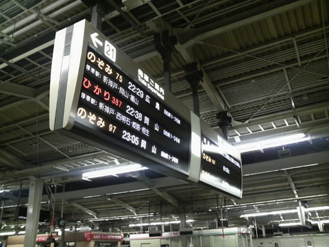 帰路は,すなおに新幹線。広島まで行く最終の「のぞみ」である。往路は,普通列車を乗り継いで5時間半かかった広島と大阪の間だが,「のぞみ」だと1時間半ほどで着いてしまう。その差は4時間,4000円。あえて時給に換算すれば,1000円である。単発のアルバイトとみなせば,悪いものではない。新幹線の利用は,「時間を買う」ようなものと言えるだろう。