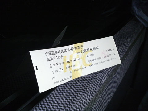 2008年05月09日(金) 天気:曇のち雨こんどはバスに乗ってみよう広島と大阪の間を移動するときには,新幹線を利用することが多い。たしかに,新幹線は便利で楽だ。まず,自分で運転する必要がないことから,クルマで移動するよりも便利で楽である。途中での乗り換えが必要ないことから,在来線の普通電車を乗り継いで移動するよりも便利で楽である。速いことは,ほかのどのような手段よりも便利で,そして,楽である。ただし,運賃・料金等は,少々高い。その高さは,便利さを享受したり,時間を節約できたりすることに対しての,代償であると言えよう。 明後日の日曜日に,大阪で用事がある。明日の土曜日にはとくに用事はないので,今回も移動のための時間は十分にある。3月のときと同様に明日,在来線の普通電車を乗り継いで行こうかと考えて,電車の時刻を確認してみた。3月のときの行程では,「福山駅で,先発の岡山行き快速電車に乗り換える。そして,伯備線から直通してくる相生行き電車に倉敷で乗り換える」のが,座席を確保するためのポイントであった(2008年3月3日の日記を参照)。しかし,3月15日のダイヤ改正によって,件の相生行き電車が岡山駅始発に変更になっていた。これでは,岡山駅からの座席を確保できる可能性が低くなってしまう。 いや,待てよ。高速バスはどうだろう? 大阪と広島の間には,夜行便だけでなく昼間にも高速バスが運行されている。この路線には,数年前に広島から大阪へ1回,その翌年あたりに大阪から広島へ1回,それぞれ乗ったことがある。2階建てバスで,どちらも2階に上がったところの1人掛けの席にあたったこともあり,展望もよくて圧迫感もなく,意外と快適だったという記憶がある。そのルートのほとんどが高速道路であり,途中,2回ほど休憩もあるので,疲れもさほど感じない。しかし,週末などは利用者が多いようで,かつて乗車した2回とも,「席はあと1つ」という状況だった。 このバスの名前は「山陽道昼特急広島号」というものの,広島ICから山陽道に入り小谷SAあたりを通過するころには,周囲は暗くなっているわけである。このままずっと夜の道を走るのだから,「昼特急」ではなく「夜特急」と呼び名を変えていただきたいところだ(笑)。