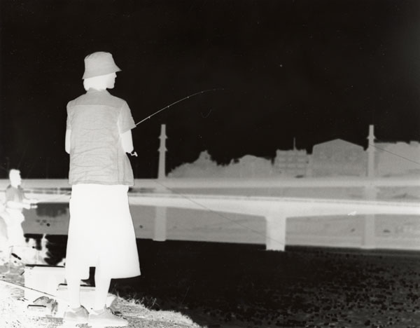 そんなとき,カラーポジで撮ったカットのなかに,使いたいシーンを見つけ出した。カラーネガであればまだしも,よりによってカラーポジである。もし,カラーポジフィルムをそのまま引き伸ばし機にかけてプリントしたら,いわゆる陰画プリントが得られることになる。この状態こそまさしく「陰画紙」だ(笑)。