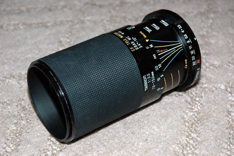 さて,このレンズは「使える状態」にあるのか,それとも気がついていないだけで「致命的なトラブルを抱えた状態」にあるのか。70-150mmという焦点域は,高倍率ズームが当たり前の現代的感覚では物足りないものがあるだろう。しかし,手もちで手軽に使える焦点域をカバーしていると考えれば,これで十分ということも言えそうだ。フィルタ径は49mmで,全体的にかなりコンパクトな望遠ズームレンズである。また,最大1/3倍までの撮影が可能な点も,おもしろそうである。同様な焦点域のズームレンズであるNikon LENS Series E 75-150mm F3.5にくらべて,はるかにコンパクトで接写が可能であることは,とても魅力的だ。