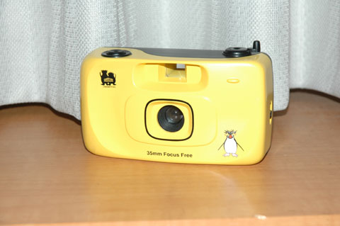 「イワトビペンギン」は,目の後ろあたりに長く伸びる羽があり,どことなく精悍な顔つきをつくりだしているように見える。このキャラクタは,たしか整髪料のCMに使われていたものと思うのだが,その商品名等は覚えていない。また,このカメラがその整髪料のCMに関係のあるキャラクタ商品であれば,このカメラにその商品名等が書かれていてもいいはずだ。そのような記載がなく,「POLYGON PICTURES」という著作権表示もあるため,このイワトビペンギンは単独のキャラクタとして成立していたのかもしれない。まあ,イワトビペンギンについては記憶に残っている方も多いかと思うので,そのあたりの事情についてご存じの方があれば,こっそり教えていただければ幸いである。なお私は,イワトビペンギンというキャラクタの存在を完全に忘れていた。このカメラを見つけて,「あー,こんなのもあったなあ」と気がついた次第。その程度の存在だったということだろうか?いや,忘れられるようなキャラクタであればこそ,むしろ積極的に保護の対象にするべきなのだ。