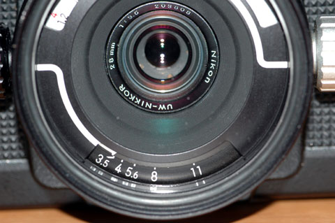 UW-NIKKOR 28mm F3.5,このレンズは,ニコノス用広角レンズである。