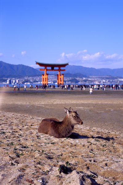 全体に混雑しているように見える宮島で,じつはこの周辺がもっとも空いていたのではないだろうか。シカも人混みを尻目に,秋の日差しをのんびり浴びているのだった。