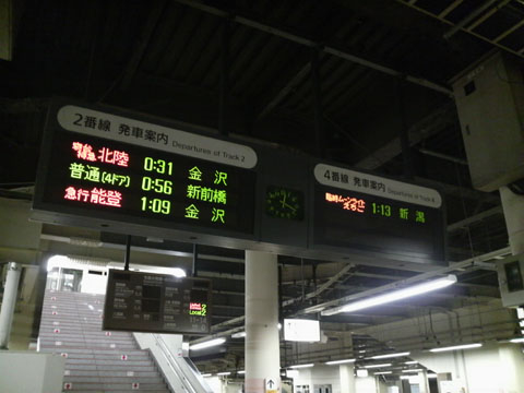 高崎駅では,最終列車の前後に,あわせて3本の夜行列車がやってくる。全国的に夜行列車が少なくなっているなかでは,貴重なシーンになってしまったと言えるのではないだろうか。0:31の金沢行き「特急 北陸」,1:06の金沢行き「急行 能登」,そして1:13の新潟行「快速 ムーンライトえちご」。