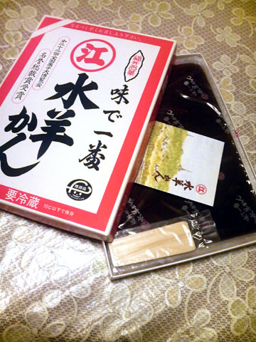 福井では,敦賀行きに乗り換える。乗り換えの待ち時間は23分。福井では,「冬に食べる水羊羹」が有名らしい。それだけの時間があれば,駅の周辺でお店をさがすことができるだろうと,列車を降りて階段の方へ向かうと,その先のホーム上の売店に「水羊かん」の貼り紙を発見。あっさりと,福井の水羊羹を購入することができた。