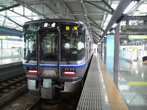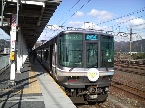 敦賀から乗り換える列車は,湖西線経由の新快速,姫路行きである。ここからおよそ3時間,距離にして200kmあまり,乗り換えなしに一気に駆け抜けてくれる。このような列車の存在は,ほんとうにありがたい。ただし,途中の停車時間もあまり長くないため,飲み物や食べ物の補充ができないことは要注意。また,念のため,トイレのある車両に乗っておくのが,なにかと好都合だろう。