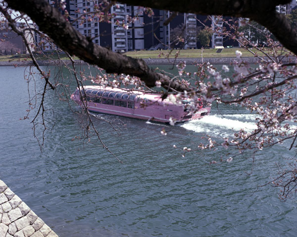 岸のサクラを一瞥しただけで,さっさと通り過ぎていく「すいすい」を十分に追いかけることができるのだ。シャッターチャージと巻き上げの連動もないが,問題なし。ましてや,ワインダーなんて必要ない。AFやAEがあったら,被写体の動きに振り回されてしまい,かえって撮りにくくなるだろう。