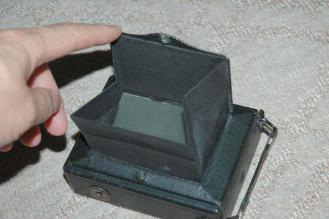 片面に,蓋らしきものがある。指をかけてみると簡単に開いた。どうやらピントグラスになっている。