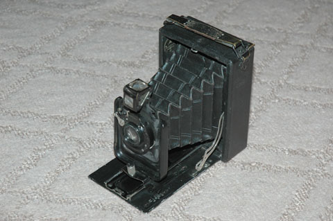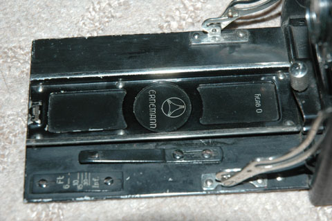 ベッド部に刻まれている文字によれば,このカメラは「エルネマン」(ERNEMANN)社の「ヘーグ0」(heag 0)というもののようだ。エルネマン社といえば,後に合併してツァイス・イコン社を結成する会社の1つ。ということは,すくなくとも1926年以前のカメラであるということか。