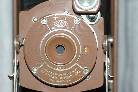 No.1ポケットコダックジュニアのシャッター速度は,約1/50秒。絞りの番号1〜4は,F11〜F32に相当する。