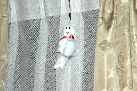 次の日食のときにも,晴天をお恵みいただきたいものである。今度は正式(?)に,紙でつくり,「晴天となれば,ひとみをかきいれ神酒を供えた後,川に流す。」(岩波書店「広辞苑」第四版の【照る照る坊主】より)も実行してみよう。