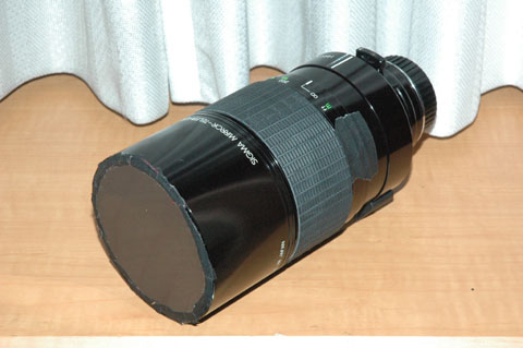 2009年07月23日(木) 天気:はれ減光フィルタを準備する昨日の日記の続き。 昨日は,広島でもかなり規模の大きな部分日食を見ることができた。 4年半前のこと,1000mmの超望遠レンズ(SIGMA MIRROR TELEPHOTO 1000mm F13.5)をいただいたことがある(2005年1月16日の日記を参照)。反射光学系のもので1000mmという焦点距離のわりにはコンパクトなレンズであるが,F13.5というたいへん暗いレンズである。特殊なレンズでもあり,使いあぐねていたものであるが,あるとき,「1000mmレンズをもっているなら太陽を撮れ。」という助言をいただいた。ためしに夕陽を撮ってみると具合がいい(2005年2月27日の日記を参照)。