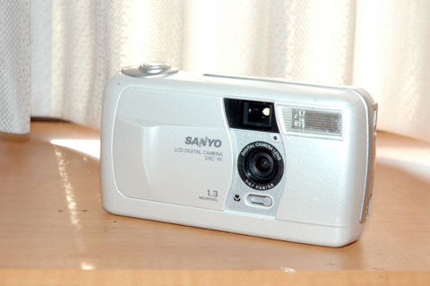 3倍ズームレンズ搭載の200万画素のコンパクトディジタルカメラである。ACアダプタと専用電池が附属して,980円。ACアダプタや電池がセットになったもので,もっとも安い価格がつけられていたものである(笑)。残念ながら,メモリスティックは附属していなかったが,しかたない。