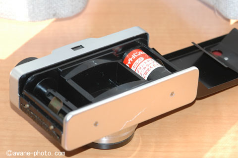 フィルムは湾曲して装填されるようになっている。レンズの性能を補うための工夫であろう。