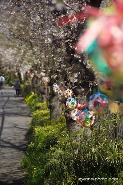 南港通りより南側は,サクラの木に飾りつけがされている。