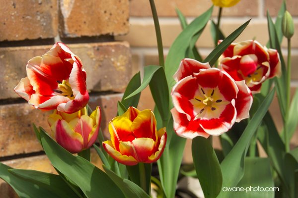 バイカラーの花が開くと,一気ににぎやかになってくる。朝日と水を浴びて。