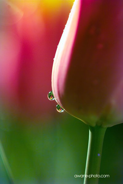 水滴はレンズになり,倒立した世界を見せる。