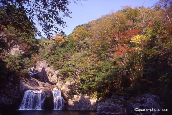 昨日,三段峡で撮ったフィルムの現像ができてきた。35mm判で撮ったものはEktachrome Dyna EX 100にPLフィルターを使用しているから,期待通りのこってりした発色だ。紅葉(こうよう)の色を強調するにはこんなものだろうか。一方で,6×9判の方はE100Sを使ったせいか,素直な色になっている。しかも,250mmレンズを使ったコマはPLフィルターを使っていない。