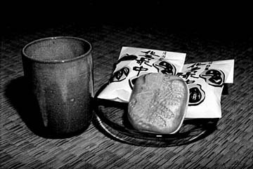 そもそも一眼レフは,接写や超望遠撮影といった特殊用途のカメラと考えられていた。一眼レフで,アイレベルファインダー,クイックリターンミラー,完全自動絞りという3つの新技術が実現するまで,主流は距離計連動ビューファインダーカメラだったのである。私の「エクサ」は,これら3つのどれも満たしていない。そこで,一眼レフならでわの撮影をしようと,レンズの最短撮影距離付近で「化石最中」を撮ってみた。