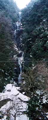 さて,実際に滝についたのは8時ころになった。残念だが,右の写真のように,滝にはほとんど,雪が残っていない。