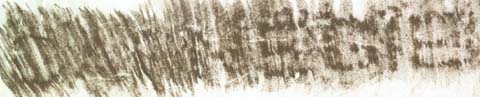 しかし,件のレールはすぐに見つかった。なんのことはない,件の刻印の部分に,マジックペンらしきもので,文字の縁取りをしてくれているのである。その刻印全体は,次のように読めるとのことである。 1900 CARNEGIE ET |||| 工 刻印部分を,ソフトパステルで写し取ってみた。