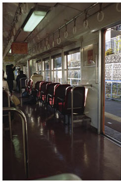 高い料金をとるだけあって,特急はまあまあ快適で,しかも速い(とはいえ,新幹線に乗り慣れると,実に狭くて遅いわけだが (^^;)。伊勢中川では,名古屋行き急行との連絡もよく,桑名には3時すぎに着くことができた。はじめて訪れた桑名であるが,お正月だからだろうか,実に静かな街であった。さて,北勢線のホームへ向かうと,やはりというべきか,普及型望遠ズームレンズ付きAF一眼レフカメラを持った,大学生くらいと思われる人が数名。ちょうど入ってきた北勢線電車にレンズを向けている。