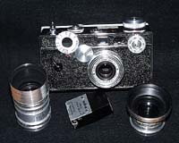 距離計は,上下像合致式で見難いものだが,レンズと連動しているので,慣れればこれは十分に使える。レンズのヘリコイドを回して調整することもできるが,距離計のギアを回してピントあわせをすることも可能である。このようなしくみや,直方体の黒いボディは,「ContaxI型」を意識したものではないだろうかと想像する。