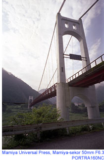 宇賀での撮影を終えると,空が少し明るくなってきた。このまま晴れてくれる(少なくとも雨は降らない)ことを期待して,久しぶりに三段峡を柴木の方から歩いてみることにした。歩くことを目的としたので,カメラは軽量にまとめようと思ったが,結局,マミヤプレスとレンズ3本(75/5.6, 100/3.5, 250/5)を,三脚(スリック・マスター)とともに持って行くことにした。運動不足の身には,これでも辛いものがあるが,「トヨビュー45C」と「ザ・プロフェッショナル」の組み合わせにくらべれば,十分に小型軽量コンパクトな組み合わせである(笑)。
