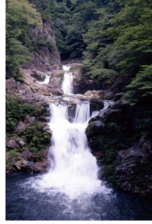 | 長渕〜黒淵 | 遊歩道は比較的低いところを通る場合もある。多くの滝(圏谷),瀬,淵など,変化に富んだ光景を楽しむことができる。 |