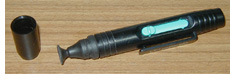 レンズを清掃する道具として,個人的にもっとも気に入っている製品は,「レンズペン」という名で売られているものである。ペン状の棒の片方に,セーム革のついた部品がとりつけてあり,反対側はブラシになっている。説明書などによると,「炭素の粒子をつけたセーム革で,レンズに傷をつけずに汚れだけ削り取る」というしくみのようである。炭素の粒子(と書いてあるが,具体的にどういうものかは知らない)は,汚れよりは硬いが,レンズよりは軟らかい,ということなのだろう。そして,大きな埃をブロアーで飛ばし,レンズペンの反対側のブラシで掃い,最後にレンズペンで磨けば,レンズは簡単にきれいになるのである。