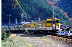 中国道を利用して三段峡駅に先回りし,団体専用の臨時列車を迎える。