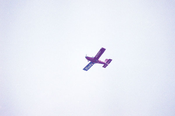 SIGMA MIRROR TELEPHOTO 1000mm F13.5, Venus800いつもの太田川放水路に移動した。ここなら,鳥に出会えそうだからである。しかし,休日で河川敷に人が多いせいか,鳥の姿はあまりない。ふと見上げると,小型飛行機の姿があった。無謀にも手持ち撮影である。というか,飛翔体など,三脚で撮ることができるはずもなさそうである。 |