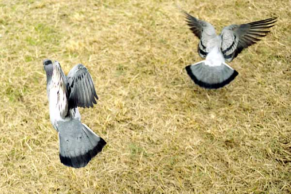 YASHICA CONTAX RTS, TAMRON 35-70mm F3.5, GOLD200この枠は,以前はどこの信号機にもふつうに見られたものと思うが,最近はめったに見かけることがなくなったように思う。この枠には,なにか意味があるのであろうか?この信号機そのものは,新しいLED式のものに変更されているので,信号機を交換するたびにこの枠のついた信号機が減っていった,という事情でもなさそうな気がする。 ところで,河原に降りてみると,ハトがたくさんいた。ファインダーを覗きながら,ハトに近づいていく。ある程度まで近づくと,飛び立つ。その瞬間にシャッターを切る。こういうときの応答のよさは,CONTAX RTSのよいところなのかもしれない。